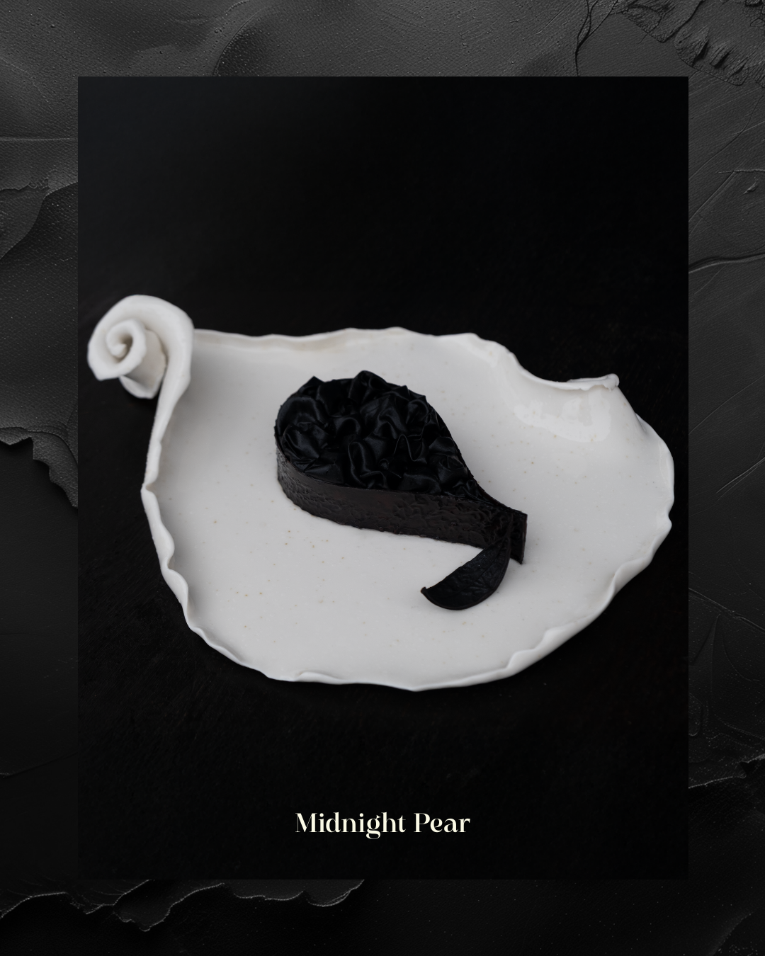 By blackening the pears and transforming the husks into a miso, I sought to reveal deeper flavour, finding beauty in what is usually forgotten.”